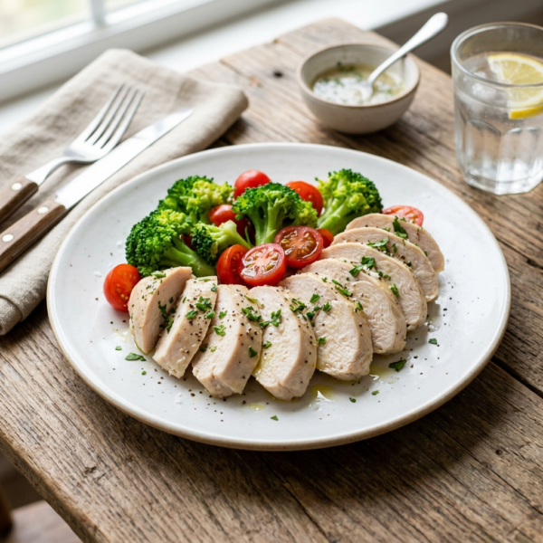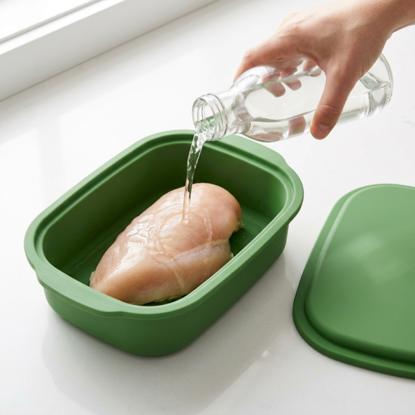 シリコンスチーマーを使えば、わずかなステップで柔らかい鶏むね肉が仕上がります。